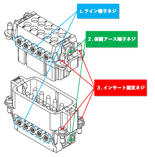 - ライン端子ネジ 電線(導体)をコネクタにつなぐ
