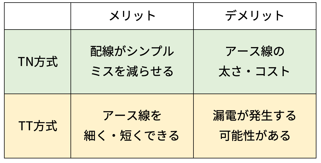 また、アース線のサイズ選定はTTとTNで考え方が異なります。TTの場合は使用する機器の容量から、TNの場合は配線で規定が決まります。