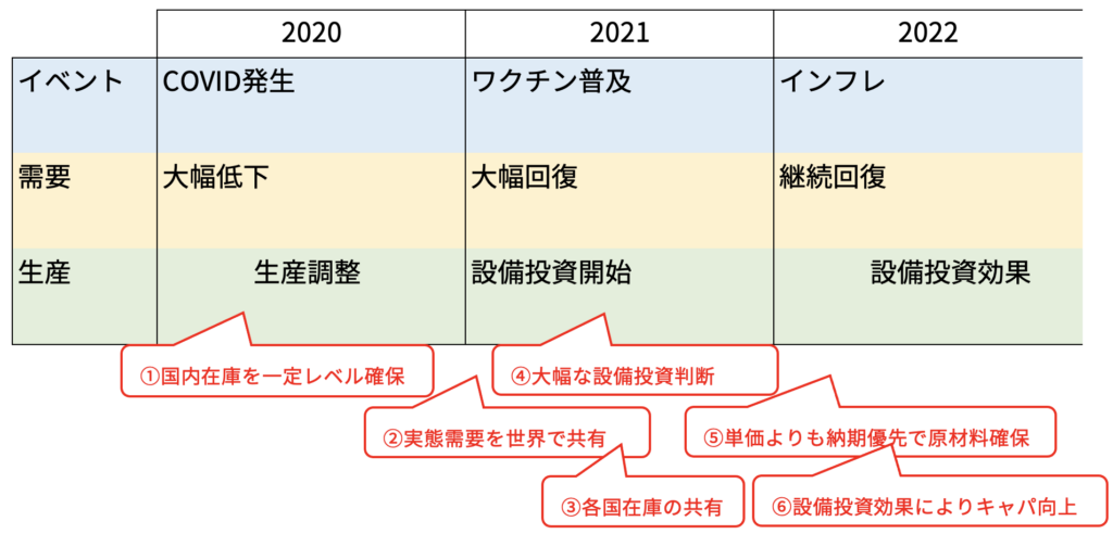 COVID19による景気低迷から、withコロナ時代への突入による急激な景気回復、そしてウクライナ危機が発生しサプライチェーンが大きく混乱しています。