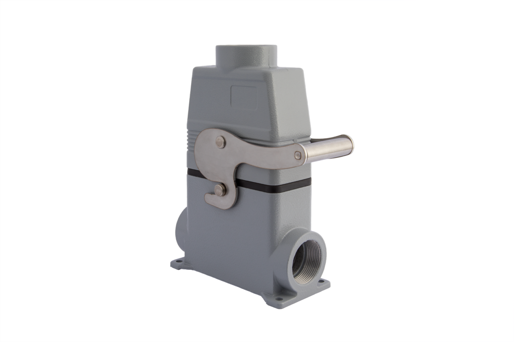 角型コネクタをつかって、装置の動力や制御配線を1つに集約化し、配線の簡素化・省スペース化を図ることは大きなトレンドとなっています。しかし、複雑なシステムの配線を集約化すると、一つのコネクタの中に動力から通信にいたるまで、100本を超える配線が集中することもあります。当然、脱着にはそれなりの力が必要になります。