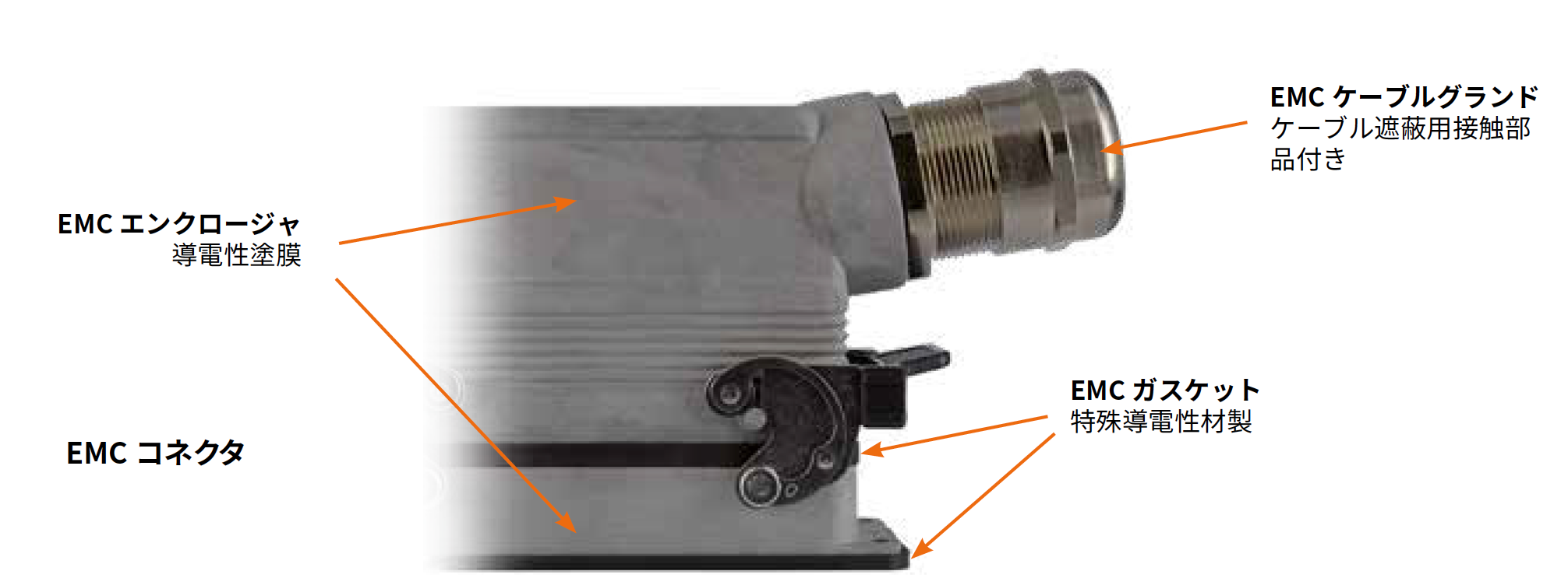 角型コネクタにもEMC対応に特化したシリーズがあります。標準品との違いは、以下の3点です。
