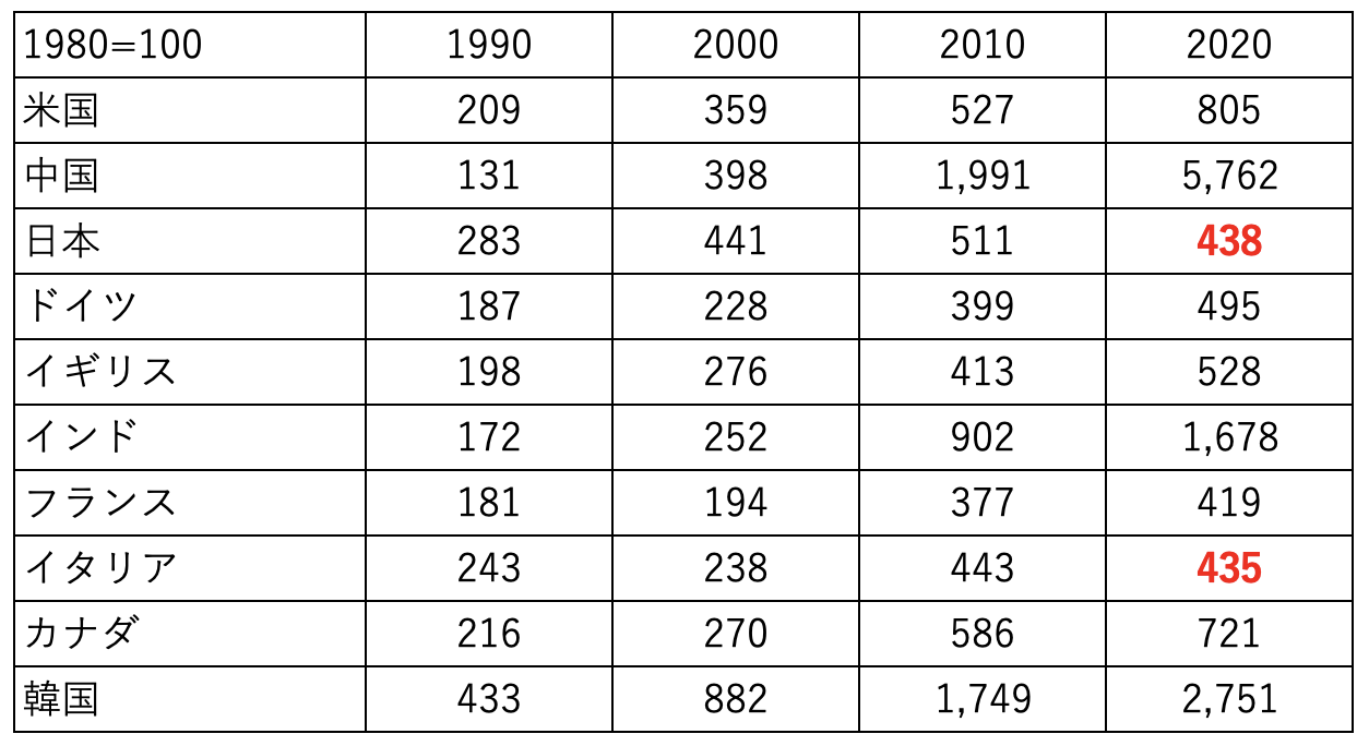 そうです。日本はなんと2010年と比較した場合には縮小しているんです。