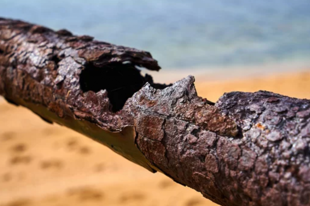 さらに、海水の塩というのは厄介な存在で、通常の塩化ナトリウム以外に、塩化マグネシウムという潮解性(空気中の水分を取り込んで自発的に水溶液になる材質)の塩も含まれます。つまり、見た目が乾燥した状態でも自発的に”水”を集め、周囲にある豊富な”酸素”をつかってどんどん腐食が進みます。