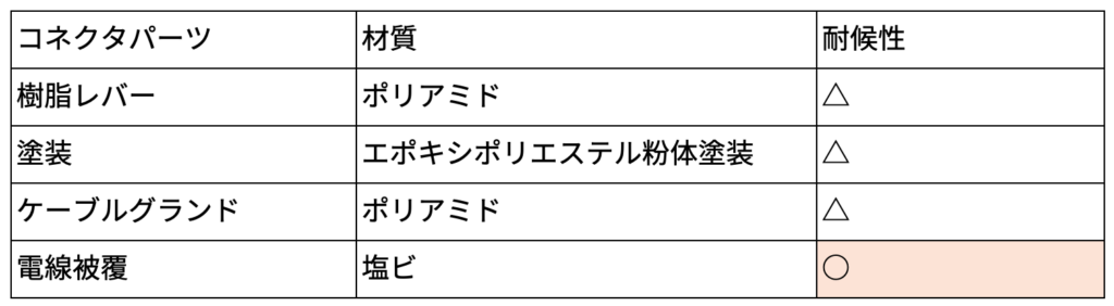 屋外でコネクタを使用する場合には、主に下記の点に注意が必要です。