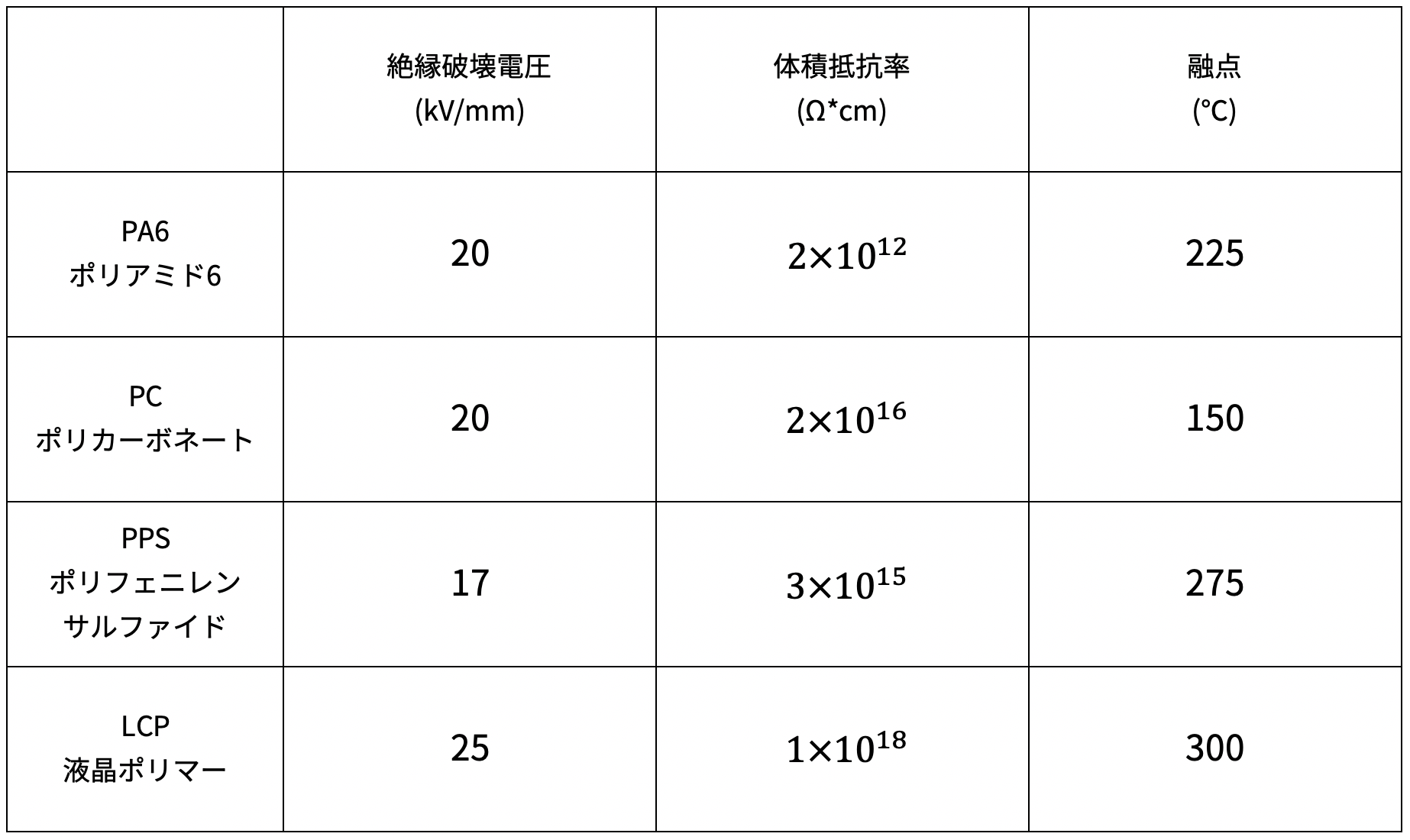 この秘密は電圧と電流を操る①で少し解説しましたが、インサートの素材の違いです。一般的なインサートはPC(ポリカーボネート)で仕様上の耐熱温度は125℃になっています。高温対応タイプはPPS(ポリフェニレンサルファイド)で耐熱温度が180℃です。