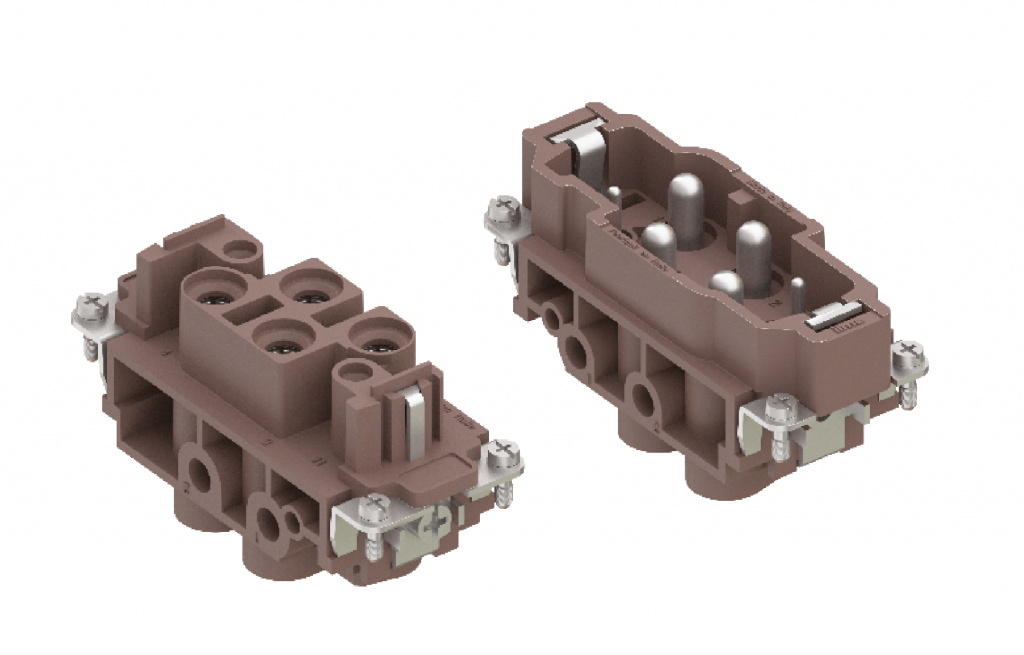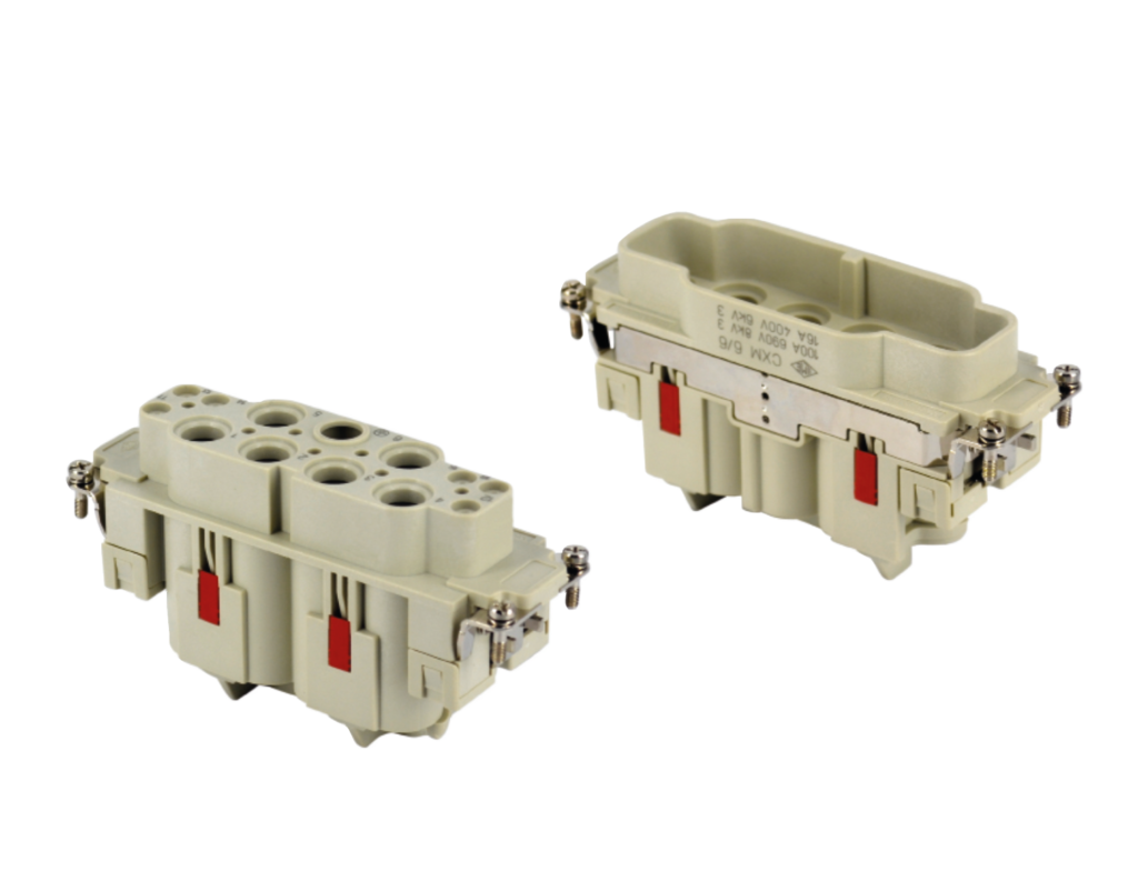 実際の大電流のコネクタの選定について見てみましょう。上のコネクタは前述比較写真の100A用コンタクトを実際に搭載することができるコネクタです。