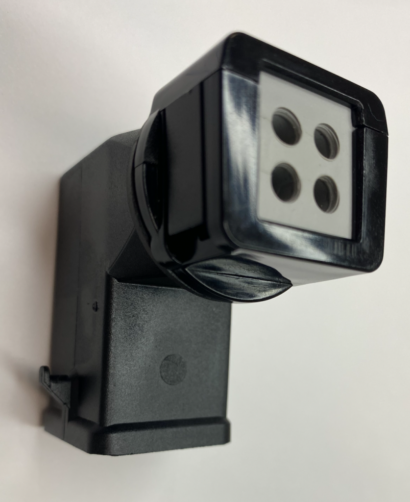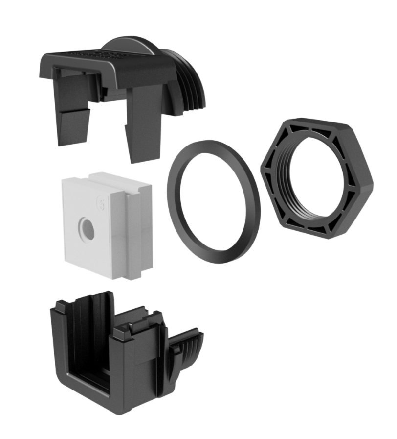 この角穴用プラグは、オプション用の角穴とネジ穴をワンタッチで塞ぐことができます(IP54の保護性能を確保)。