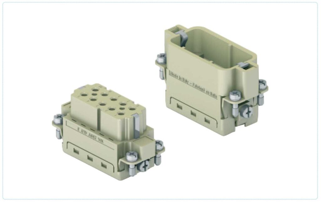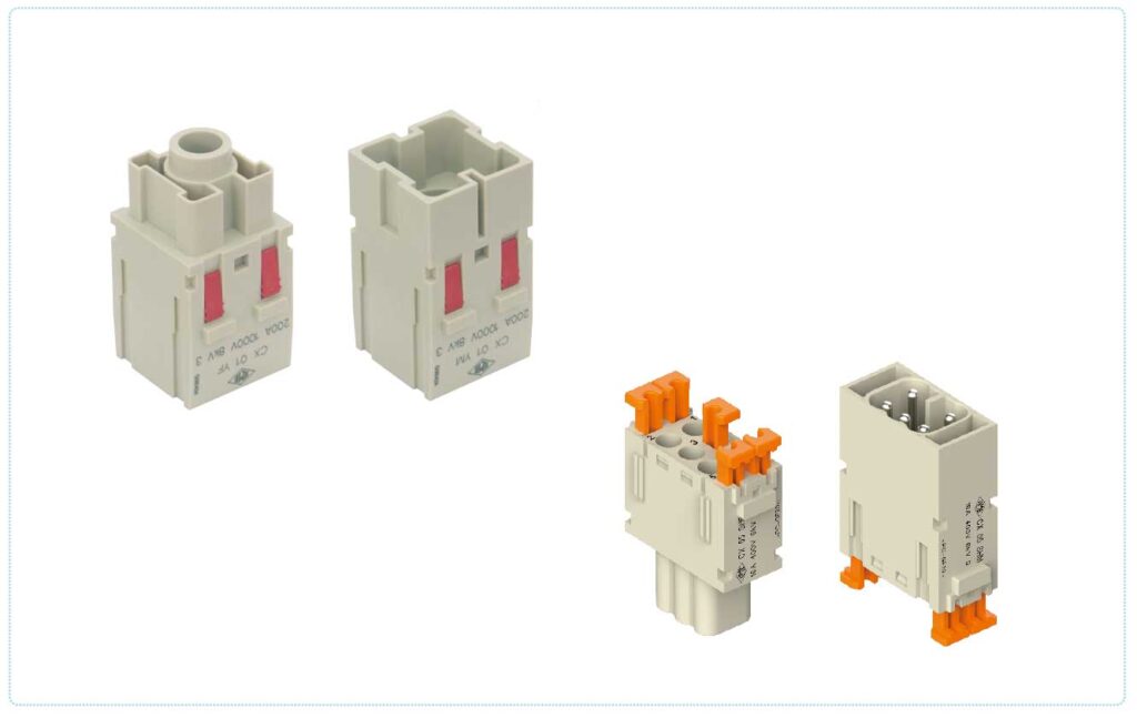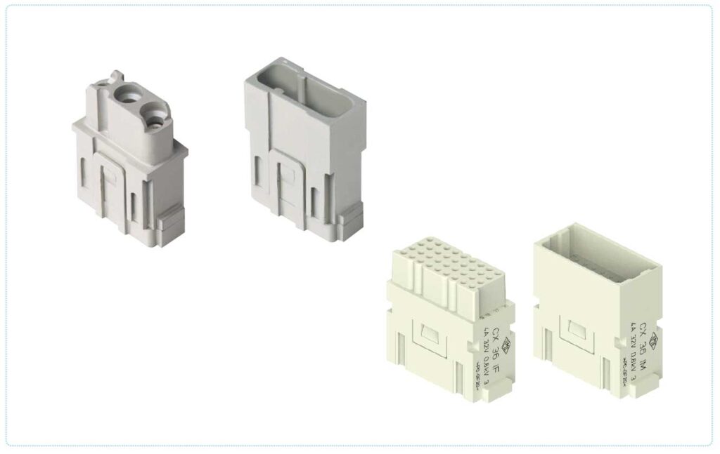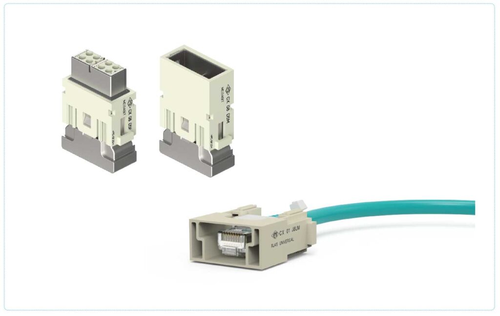 モジュラー式インサートMIX0は、角形コネクタの特徴を生かし、用途に応じた各モジュールを組み合わせて構成するシステムです。ひとつのエンクロージャー内部に、電気信号だけでなく、空圧や光ファイバーなどの通信ユニットをまとめることができます。