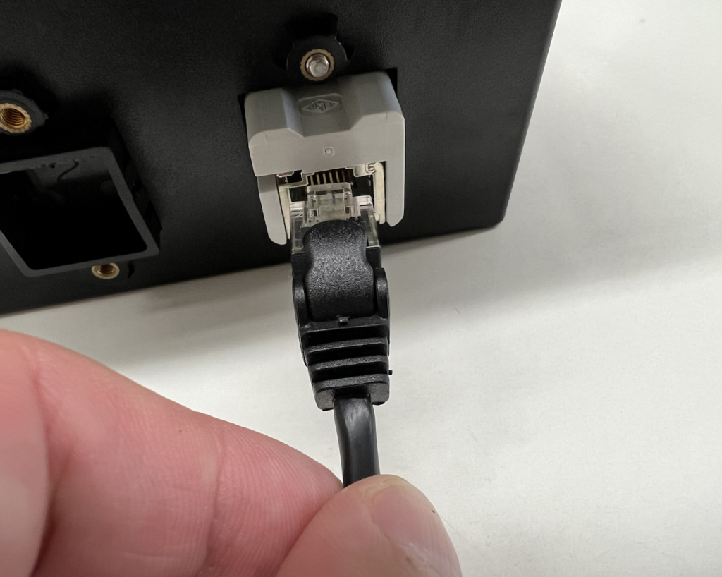 ポイントはパネル内部側です。パネル内部は通常のRJ45メスコネクタとなっていますので、PLCなどから市販のLANケーブルで直接接続が可能です。