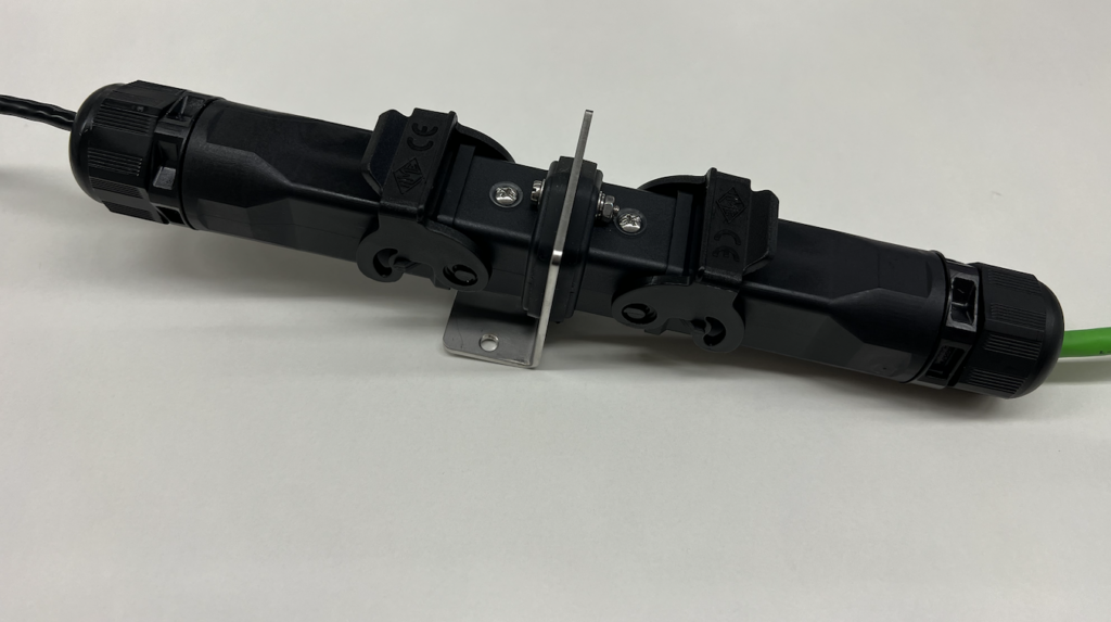 中継アダプタCYG 8JFを使えば、IP67の防水性能を維持したまま中継が可能です。
