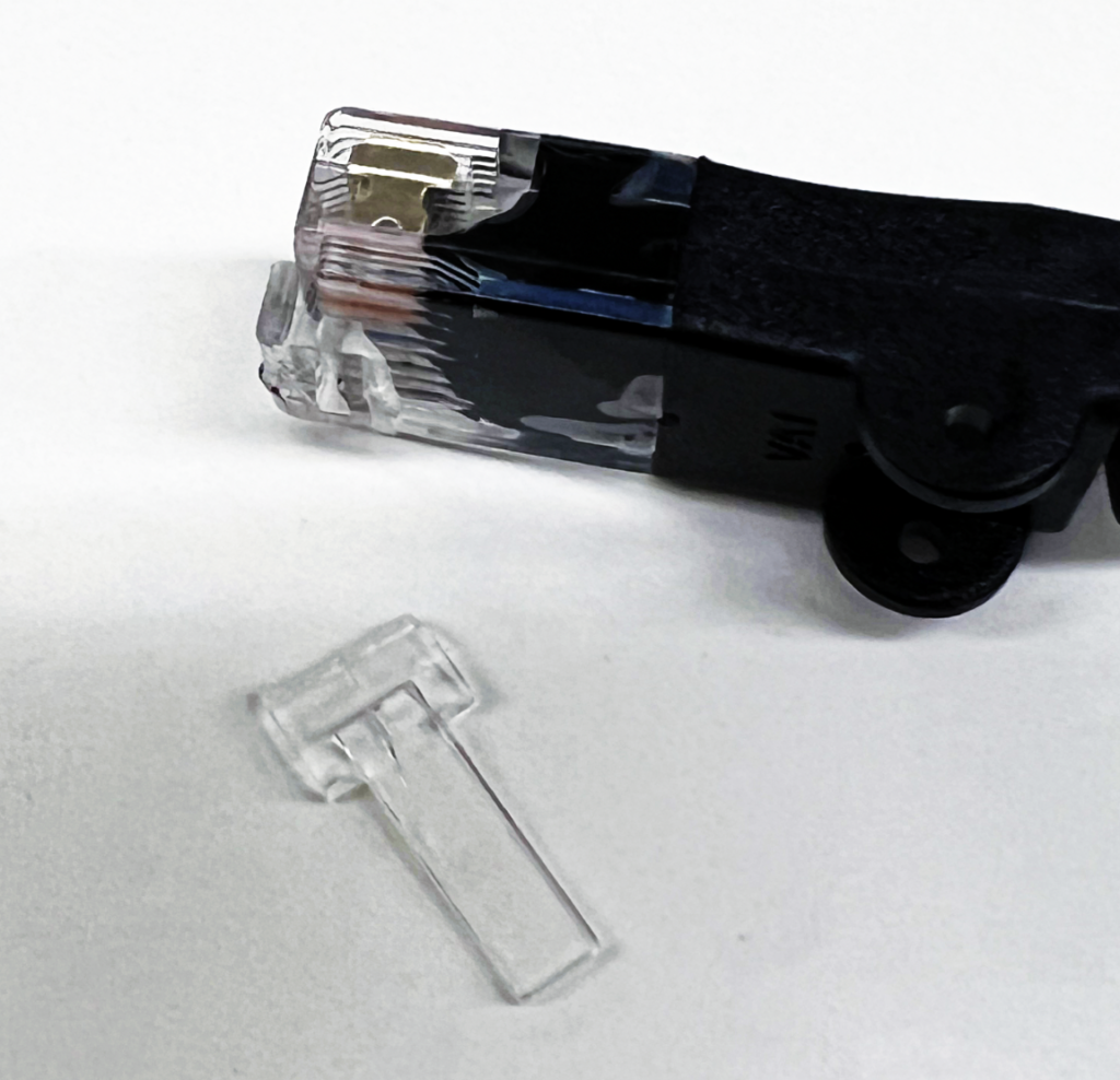 ましてや一般的なLANケーブルは、頼りない樹脂の爪で固定されているだけで、脱着を繰り返したりすると、爪が折れて固定することができません。