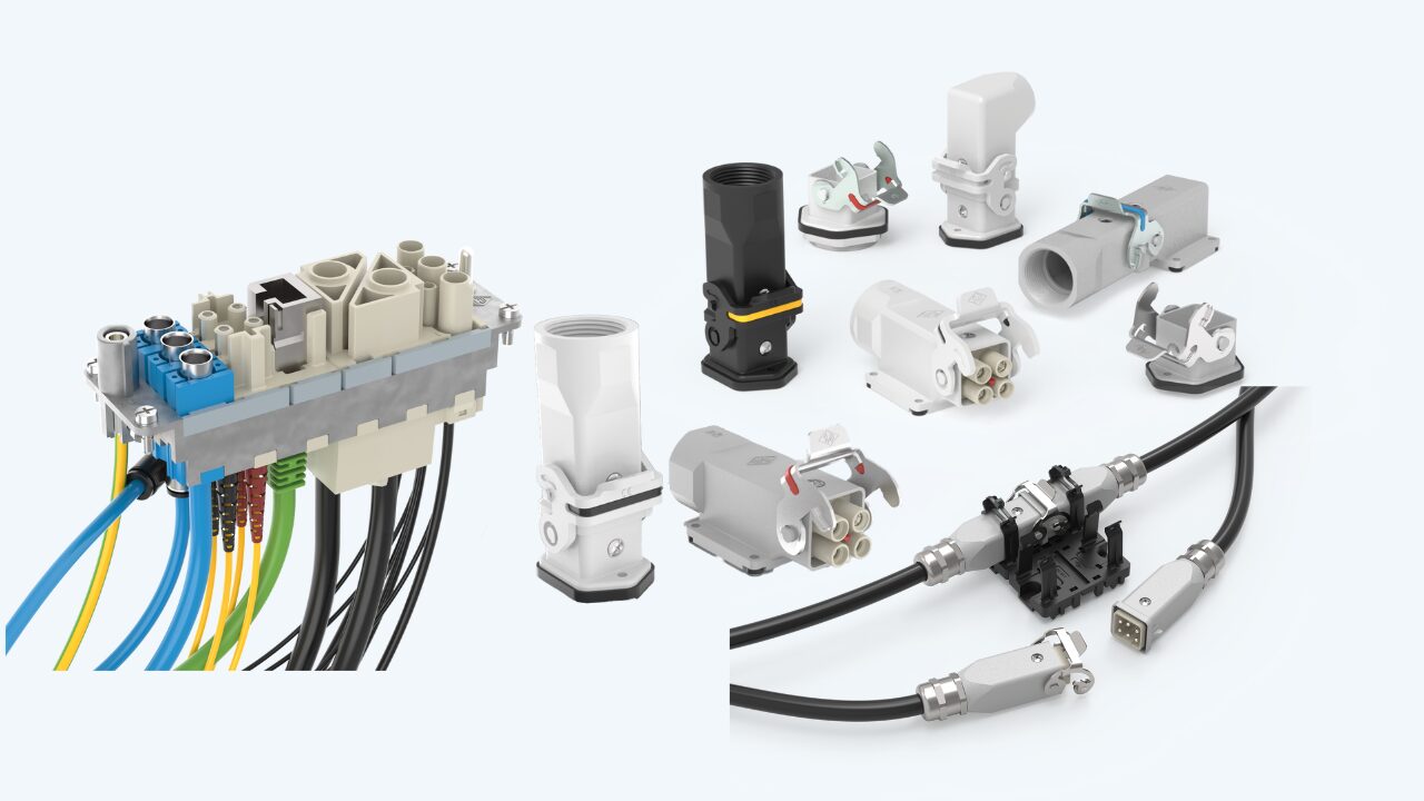 工作機械の配線、動力、信号、データの配線に万能に対応できる小型コネクタ。