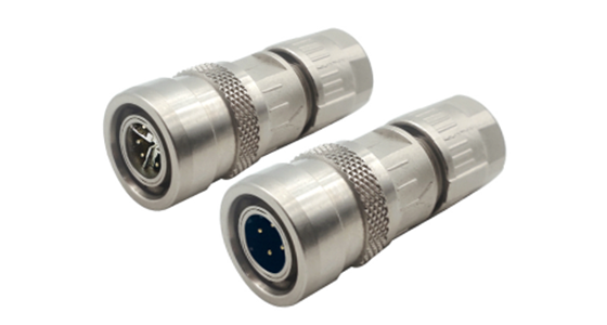 TコードM12コネクタは、DC電源供給用途に対応したコーディング規格のコネクタです。電源ラインの誤接続を防止する構造により、安全で安定した電源接続を実現します。産業機械や自動化設備の電源配線用途で使用されています。