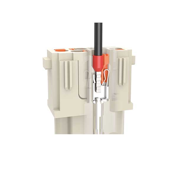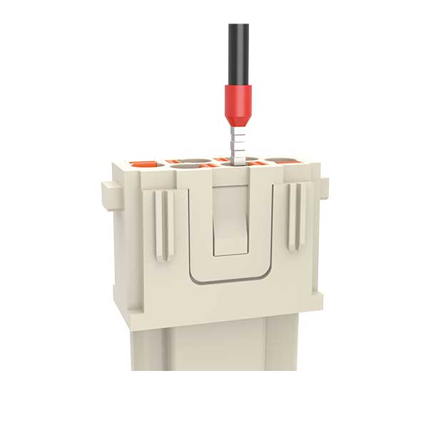 イルメの新技術 Push-in 結線システム AXYR®は、圧着式コネクタに匹敵する高密度でコンパクトなコネクタです。機械的ストレスや振動に強く、あらゆる設置条件に適した簡単・迅速・工具不要の接続方式です。