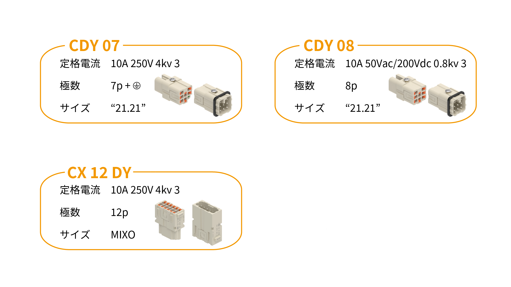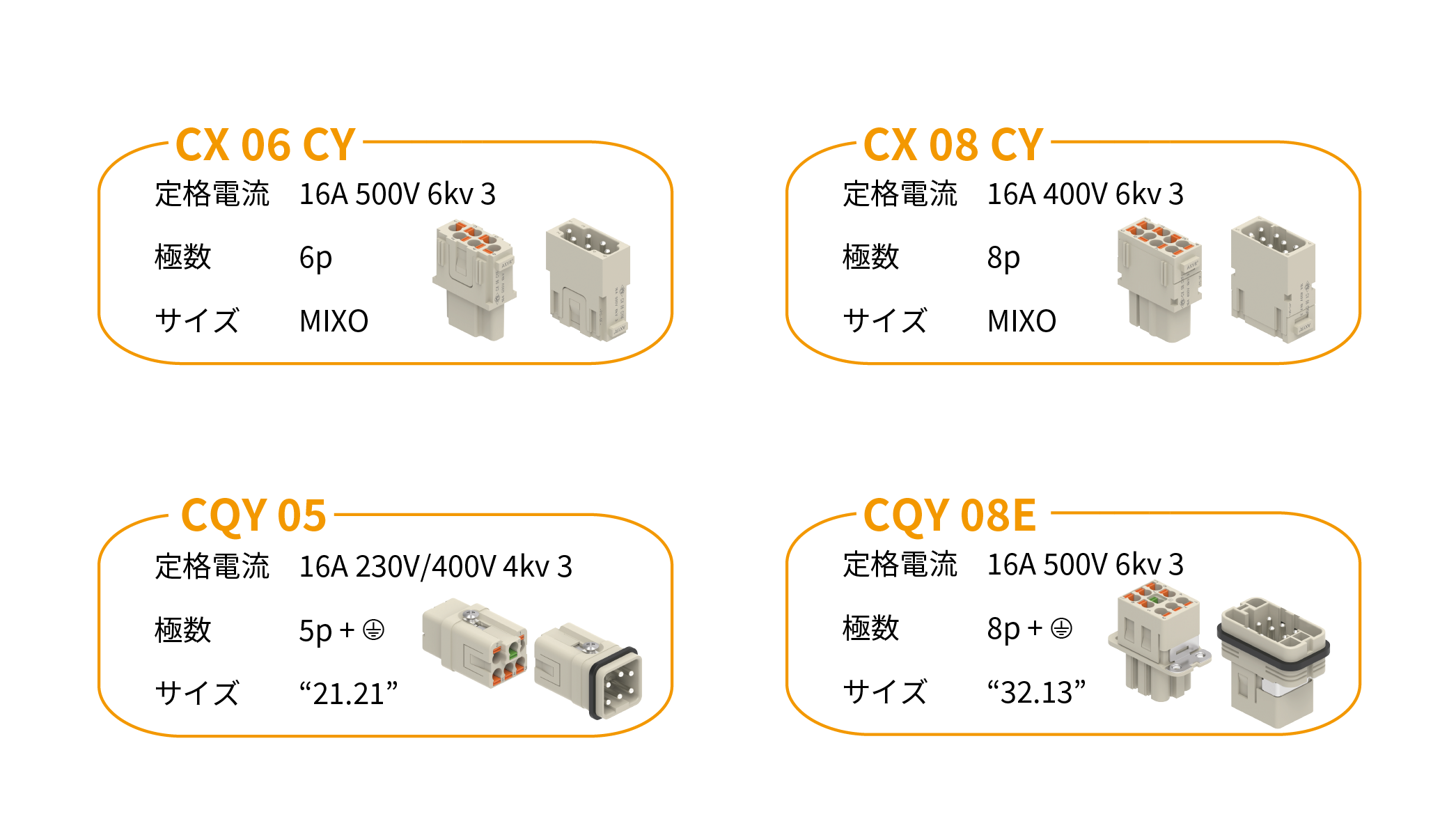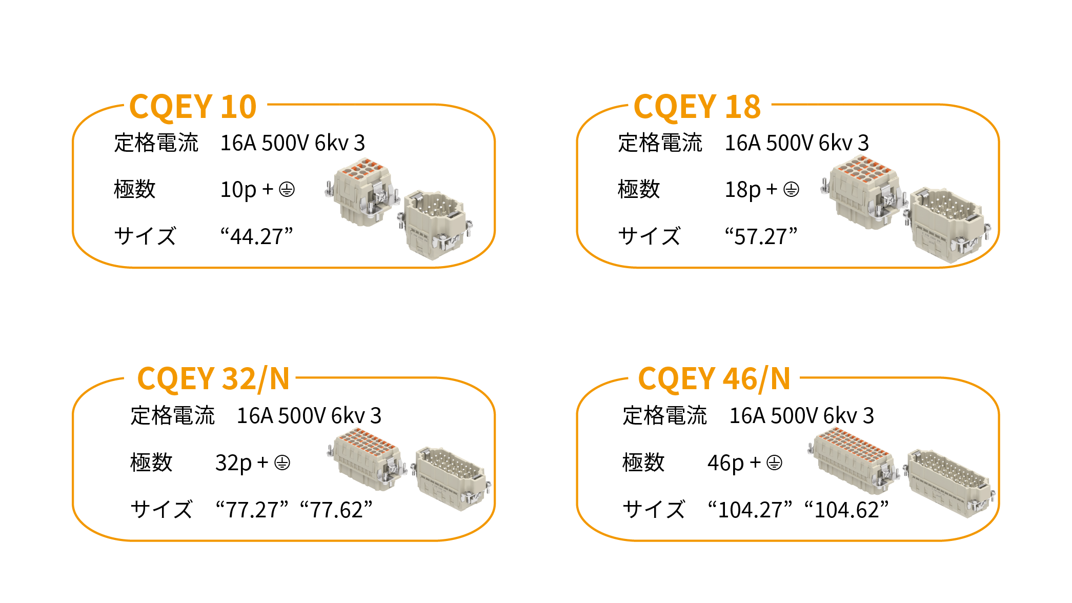 AXYR®CQEYシリーズは、圧着式のCQEシリーズと嵌合可能です。