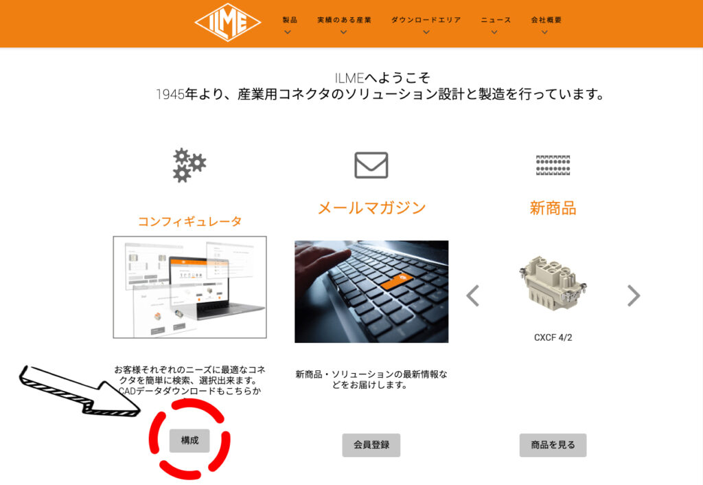 実はイルメの公式ホームページに、コネクタの選定が手軽にできるコンフィギュレータの機能が備わっているんです!