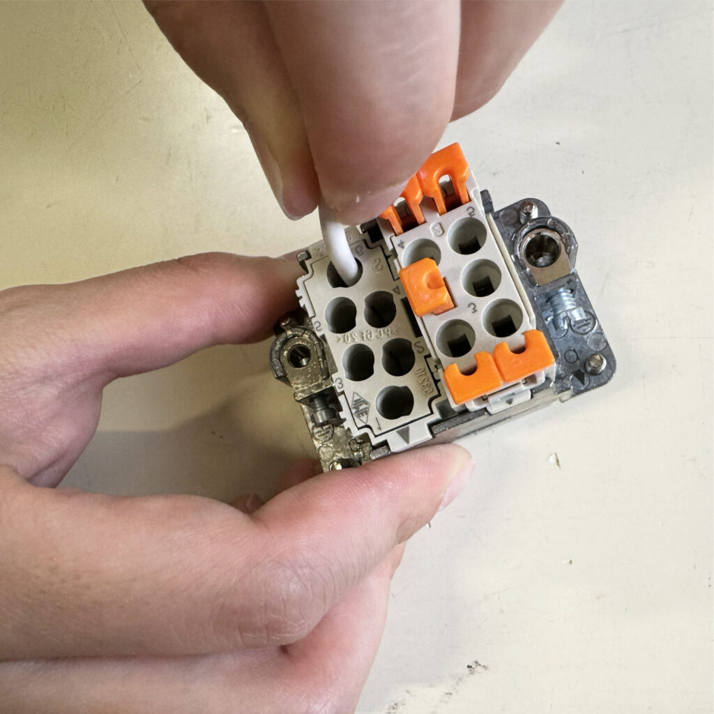 角型コネクタの結線時間です。