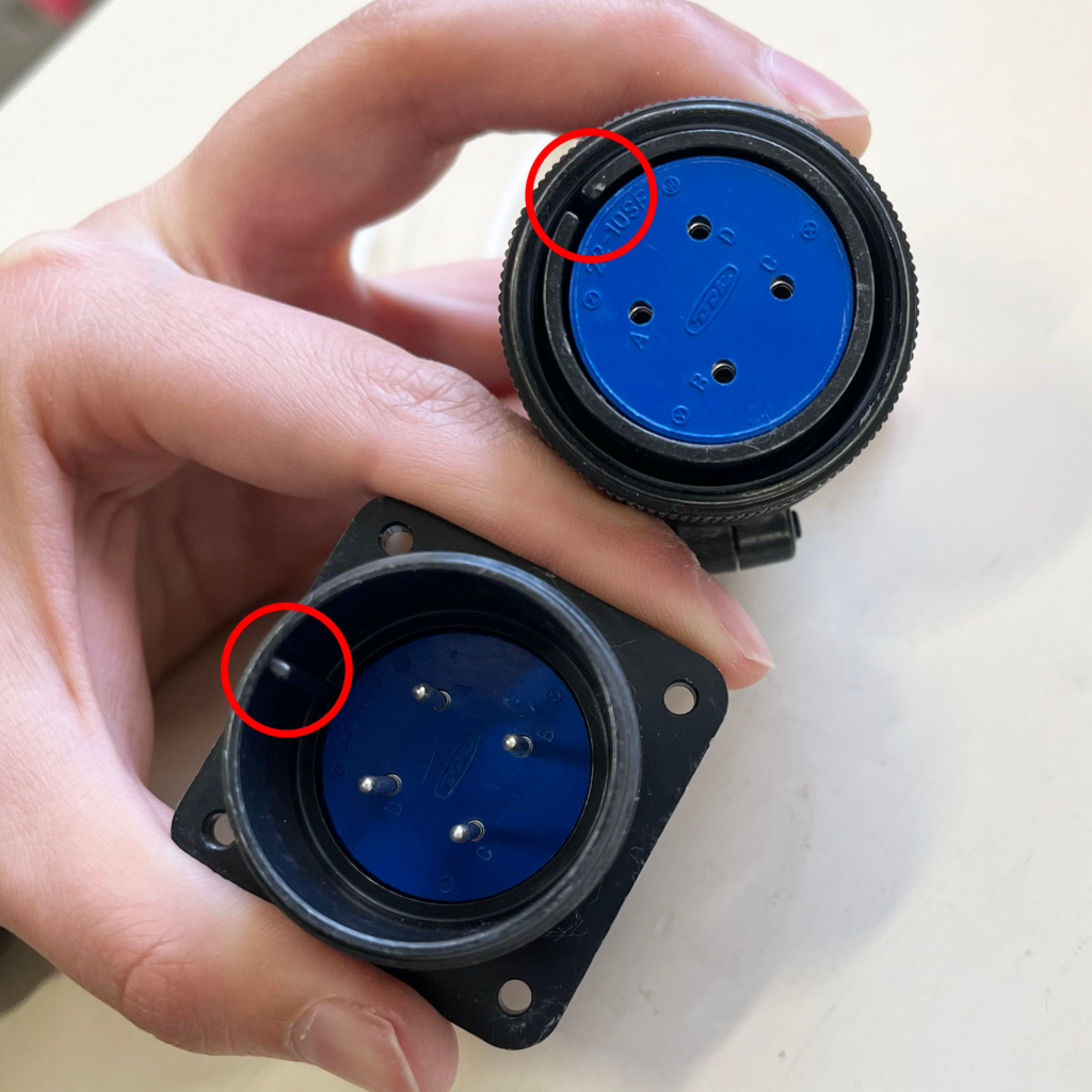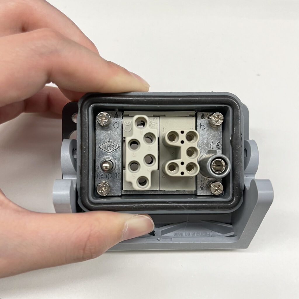 丸型の電気仕様と同等のインサート2つを組み合わせて一つのコネクタを構成していきます。
