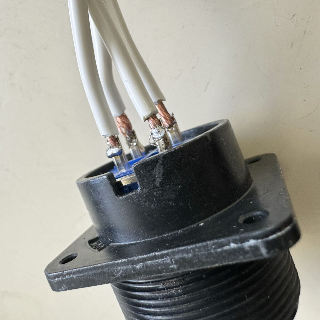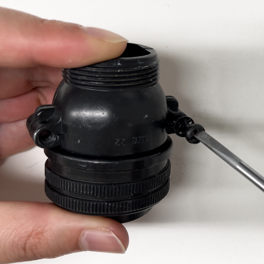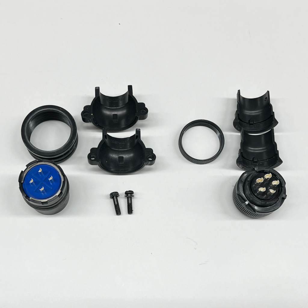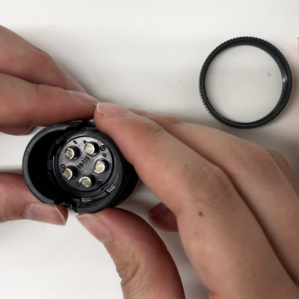 丸型コネクタの場合、制御盤側の部品であるレセプタクルは組立の必要はなく、機械側のプラグのみカバーをする必要があります。